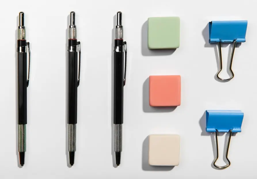 - 2 black pencils (2B lead) + 1 cap + 1 sharpener